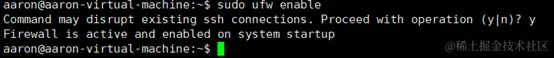 sudo ufw enable //开启防火墙