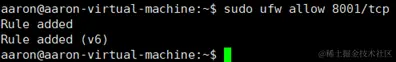 sudo ufw allow 8001/tcp //指定开放8001的tcp协议