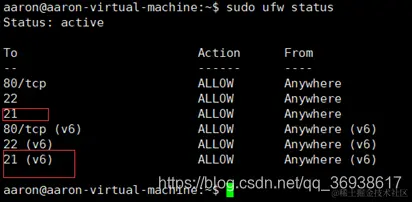 sudo ufw allow 21 //开放21端口