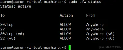 4.1、查看ufw防火墙的状态