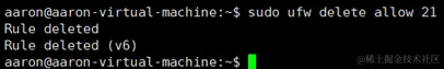 sudo ufw delete allow 21 //关闭21端口