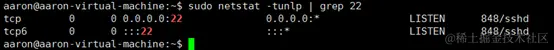 sudo netstat -tunlp | grep 22 //查看22端口信息