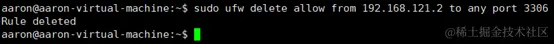 sudo ufw delete allow from 192.168.121.2 to any port 3306