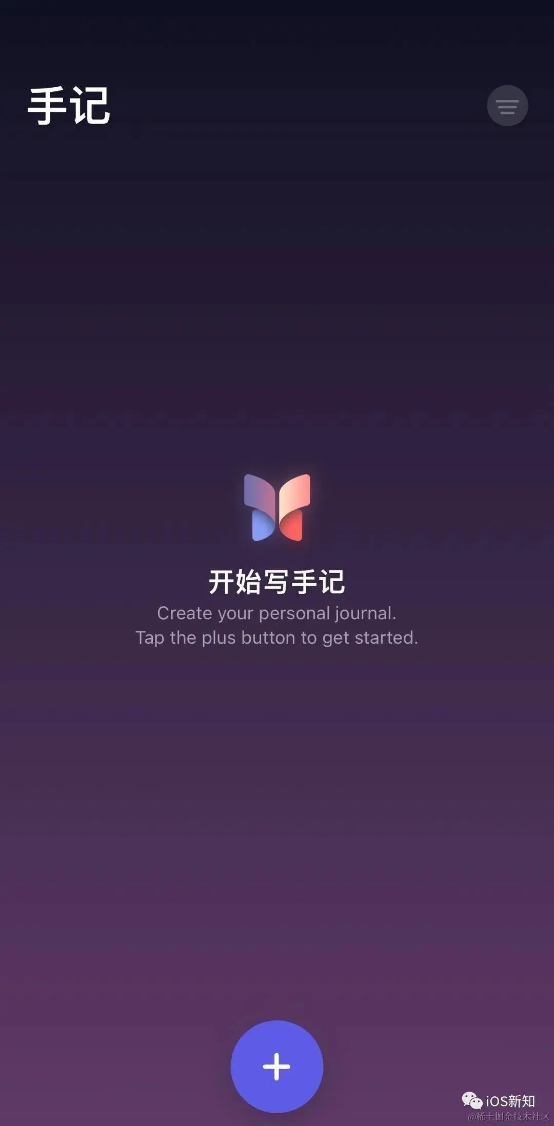 打开主页面之后,可以快捷通过下方的加号按钮添加一个新的手记:
