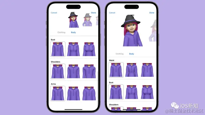 在以前的版本中拟我表情只有头像的部分,本次更新为拟我表情添加了“身体”,用户还可以在其中自定义三围尺寸
