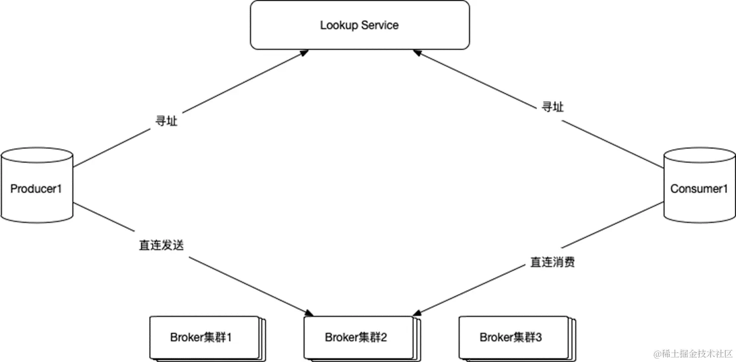 Lookup Service:Lookup Service 是个地域级别的模块,每个地区只部署一套,用于同一个地区所有 Broker 集群的路由、寻址功能,这个模块后续会重点介绍。