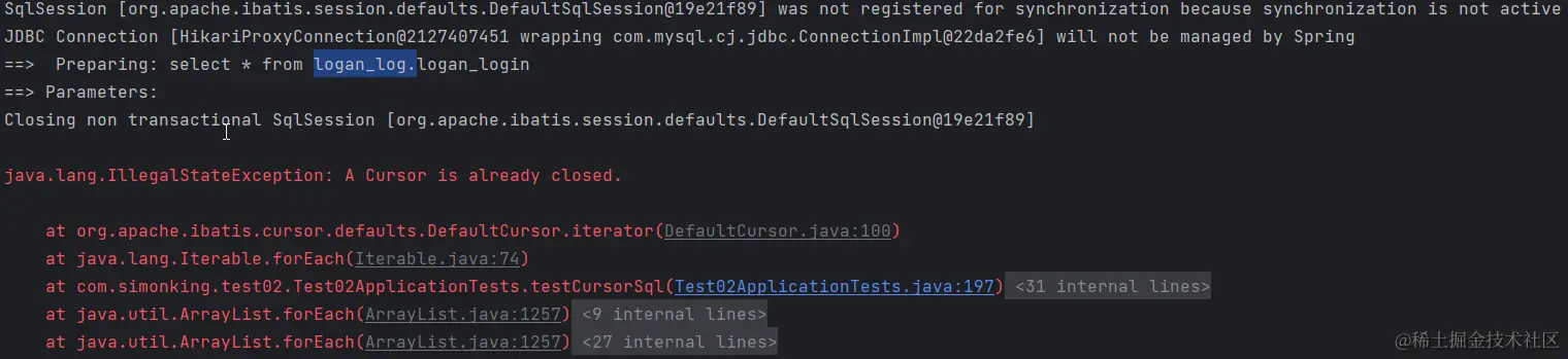 由于Mybatis帮我们做了自动事务的提交。查询完毕之后就会提交事务关闭连接,游标自然也被关闭了,就会出现这样的问题。游标需要占用数据库的连接,然后逐条的将数据返回的。