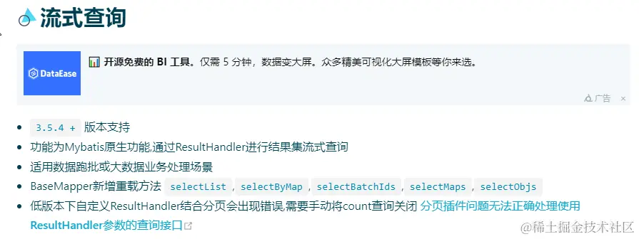mybatis中已经支持了流式查询,那么好用的MP怎么会不支持。MP在