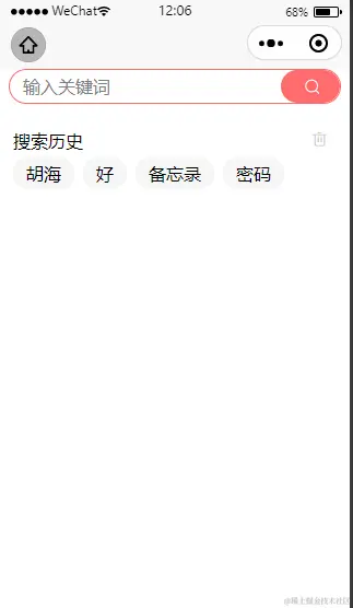功能二 :搜索操作页,有历史搜索、热门搜索