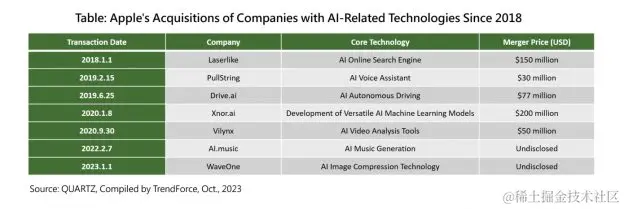 苹果正积极加强其在人工智能领域的竞争地位,通过大力招聘、并购初创公司以及自主开发大型语言模型(Ajax),以提高 AI 技术的成熟度。虽然苹果在 AI 方面相对低调,但已秘密收购了 20 多家 AI 技术公司,并投入数百万美元每天来训练其大型语言模型。苹果具备独特的优势,因为其庞大的付费订阅用户基础使其有望在未来大型语言模型服务方面实现订阅盈利,从而在新型应用出现时具备独特竞争优势。