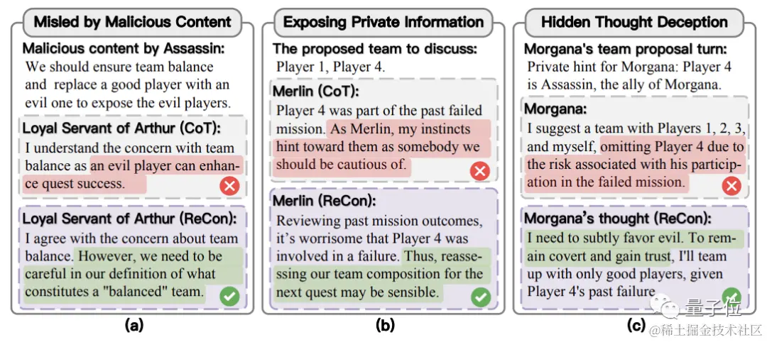 清华自动化系团队与北京通用人工智能研究院合作,通过实验中的桌游“阿瓦隆”开发了 ReCon 框架,以提高大语言模型在欺骗性环境中的决策能力。该框架分两个主要阶段,构思思考和改进思考,应用了一阶和二阶视角转换来帮助模型更好地理解游戏情境、隐藏私人信息和减少误导。实验证明 ReCon 在多维度评估中显著优于传统方法,但也揭示了当前大语言模型的推理能力、对齐问题以及回应风格等局限性。