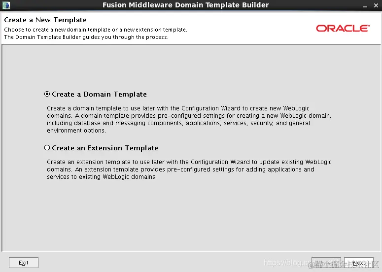 创建扩展模板(用来给已存在的domain,去增加部署的应用程序,增加服务,这不是创建,而是扩展)。
