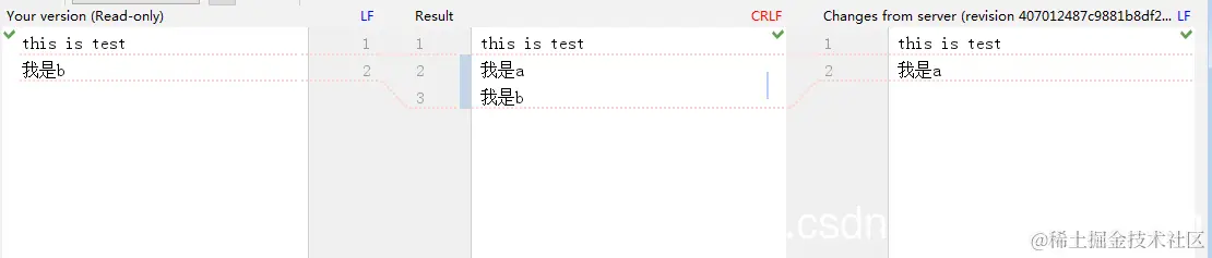 第一种解决方案就是,先把自己的代码保存在任意地方,然后修改成和之前没修改一样的,此时更新代码会变成a的代码,再把自己的代码加上,然后提交。