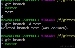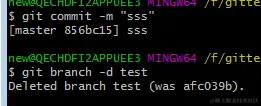 6.删除test分支(如果不修改冲突,并提交的话,是不可以删除test分支的)