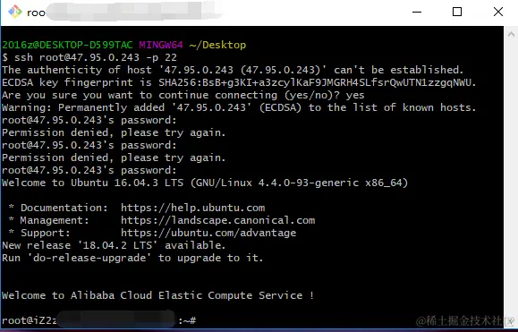 ssh root@47.95.0.243 -p 22