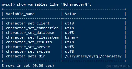 show variables like '%character%';