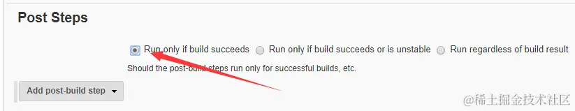 6、Post Steps 选择 Run only if build succeeds