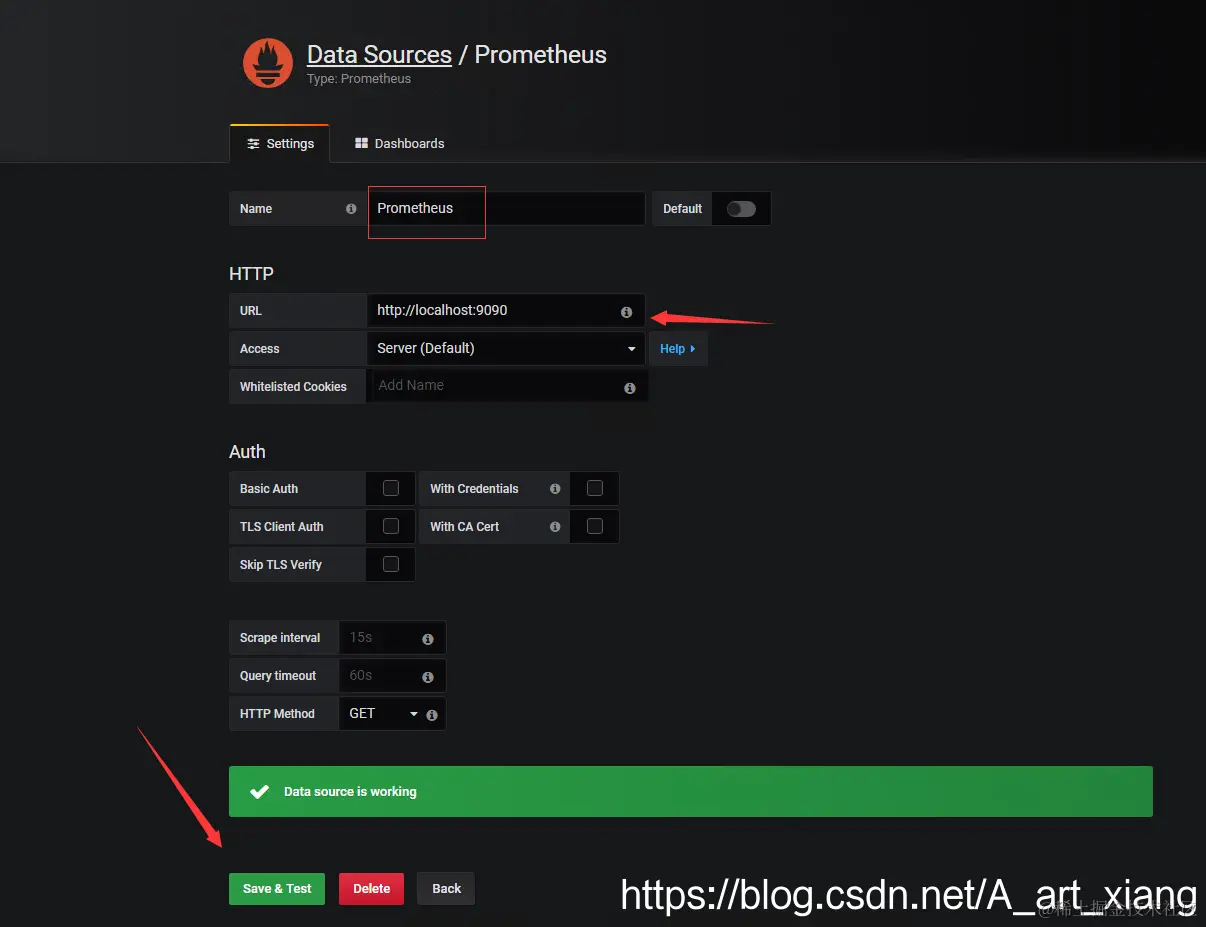 配置prometheus数据源: