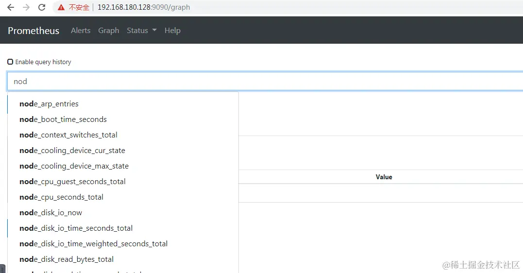 此时去Graph中,输入框输入node可以发现有很多node开头的监控项了,都是和机器状态有关的,可以自己执行看一看。