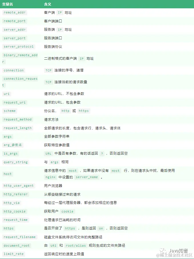 main全局配置,对全局生效;events配置影响Nginx服务器与用户的网络连接;http配置代理,缓存,日志定义等绝大多数功能和第三方模块的配置;server配置虚拟主机的相关参数,一个http块中可以有多个server块;location用于配置匹配的uri;upstream配置后端服务器具体地址,负载均衡配置不可或缺的部分;