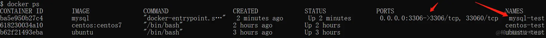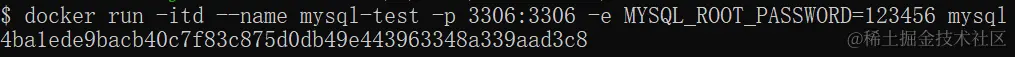 $ docker run -itd --name mysql-test -p 3306:3306 -e MYSQL_ROOT_PASSWORD=123456 mysql