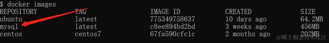 在上图中可以看到我们已经安装了最新版本(latest)的 mysql 镜像。