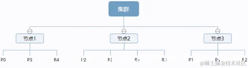 一个集群至少有一个节点,,而一个节点就是一个 elasticsearch进程,节点可以有多个索引默认的,如果你创建索引,那么索引将会有个5个分片( primary shard,又称主分片)构成的,每一个主分片会有一个副本( replica shard,又称复制分片)