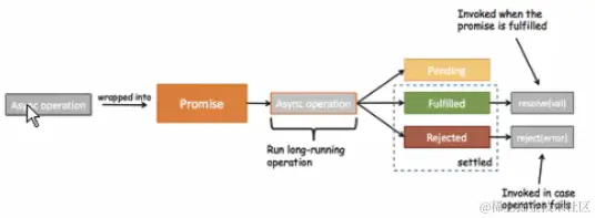 首先,当我们开发中有异步操作时,就可以给异步操作包装一个Promise。异步操作之后会有三种状态: