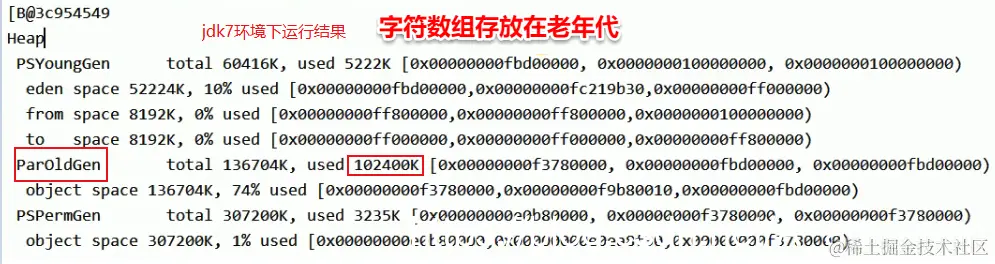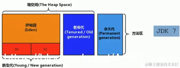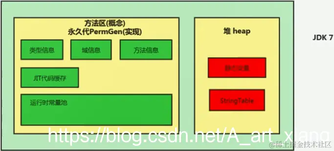 | jdk1.7 | 有永久代,但已经逐步“去永久代”,字符串常量池、静态变量移除,保存在堆中 |