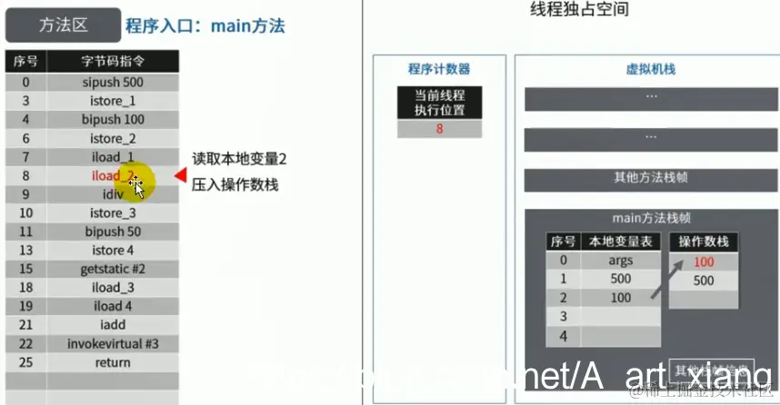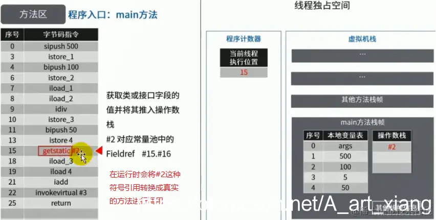 将会被编译成如下字节码,其中后面的#2、#3,就指向了class文件常量池: