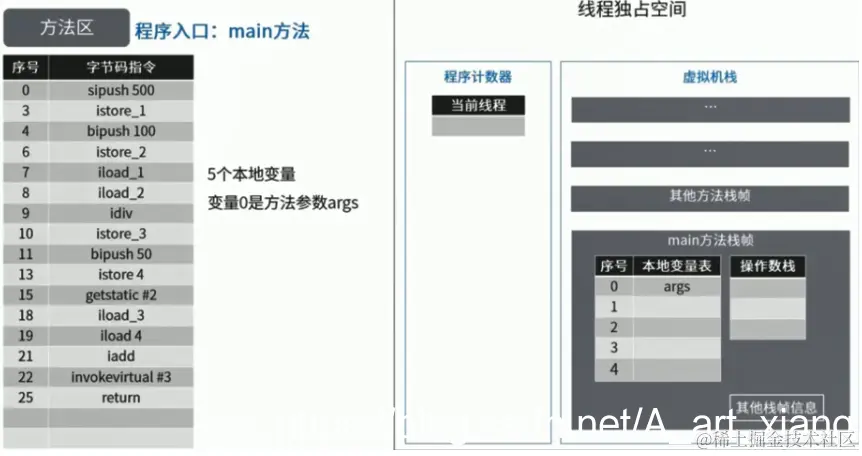 4.JVM为每个已加载的类型(类或接口)都维护一个常量池。池中的数据项像数组项一样,是通过索引访问的(类似于用#xx来指向常量池中数据)。