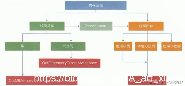 与永久代不同,如果不指定大小,默认情况下,虚拟机会耗尽所有的可用系统内存。如果元数据区发生溢出,虚拟机一样会抛出异常OutOfMemoryError:Metaspace。