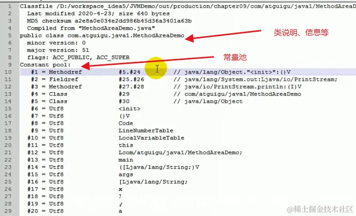 要弄清楚方法区的运行时常量池,需要理解清楚ClassFile中 的常量池。