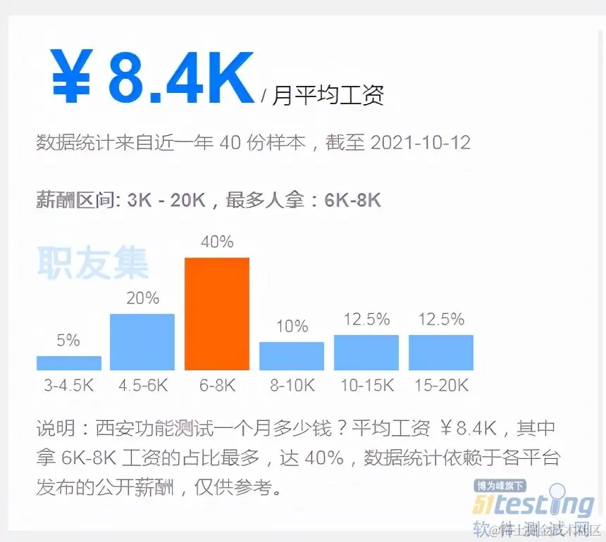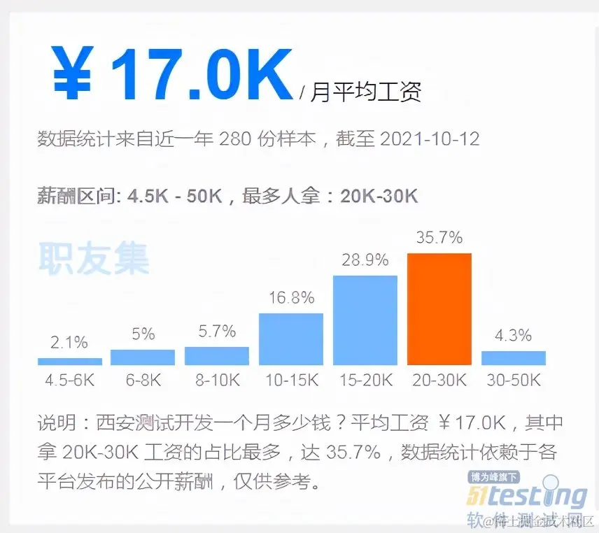 对于测试工程师来说,测试开发也是所有测试工程师的终极目标,尤其在互联网加速发展的时代,测试开发工程师只会越来越吃香。以上薪资统计不一定准确,但也能看出大概方向,不难看出,在测试领域,技术水平越高薪资待遇也会越高,所以想要在测试领域拿高薪,就要具备拿高薪的资格,不断提升技术水平,才是升值加薪的王道。