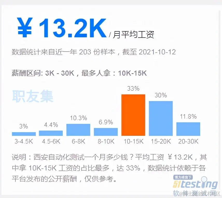 自动化测试工程师也是企业招聘量比较大的岗位,已经成了测试工程师必不可少的技能,并且薪资也是非常不错的,所以想要月薪过万的小伙伴也可以考虑这个方向。