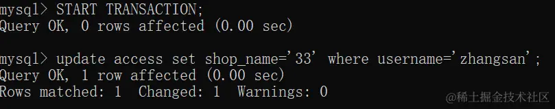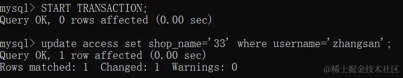 此时再开启事务执行一下update语句: