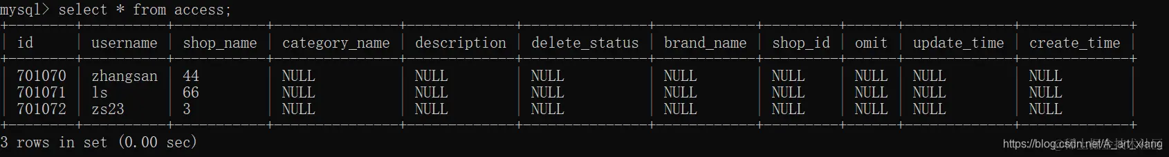 1.先看一下我的表里有三条数据: