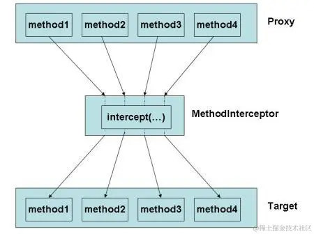 net.sf.cglib.proxy.MethodInterceptor接口是最通用的回调(callback)类型,它经常被基于代理的AOP用 来实现拦截(intercept)方法的调用。
