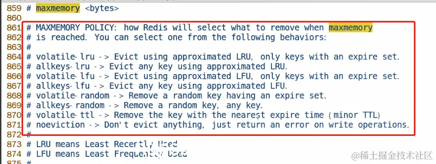 volatile-lfu 会使用 LFU 算法选择设置了过期时间的键值对。