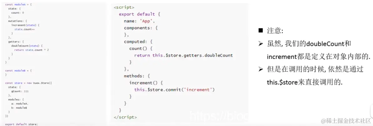 (1)Module是模块的意思,为什么在Vuex中我们要使用模块呢