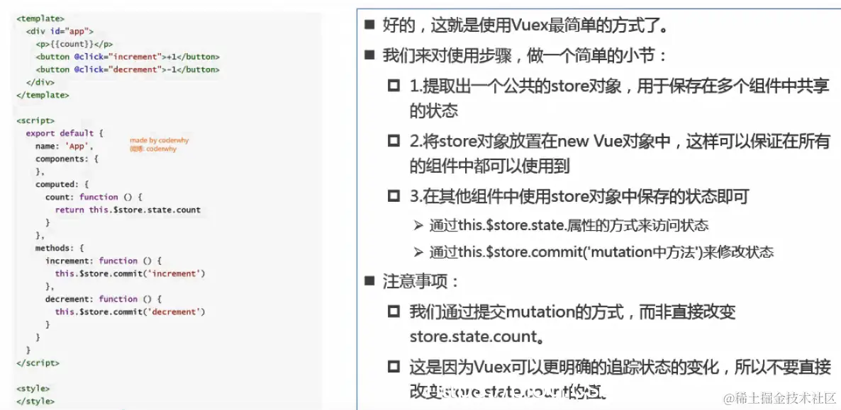 修改state只有通过Mutations修改才能进行跟踪!直接修改state虽然也能改但是无法跟踪($store.state.count++)