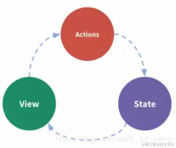 Actions:这里的Actions主要是用户的各种操作:点击、输入等等,会导致状态的改变。