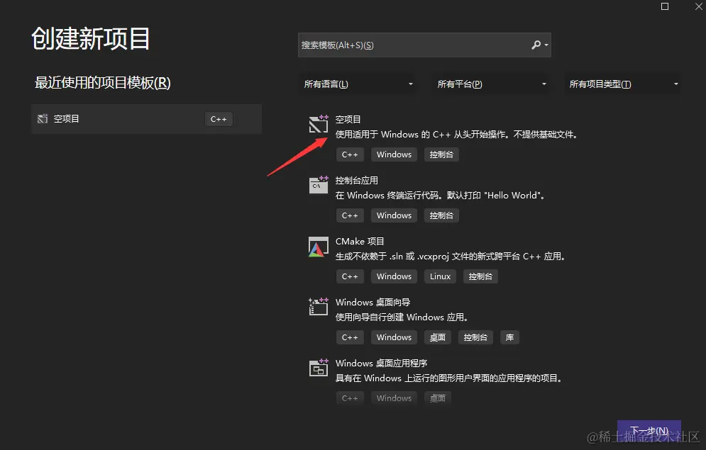 6.完成上述操作点击安装,等待下载完成即可。二、测试安装成功1.创建一个项目