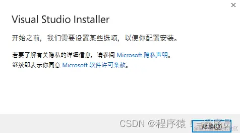 2.点进去之后会自动下载vs.exe文件(如下图所示):3.下载完成后如下图所示,直接点击继续即可。4.安装完成