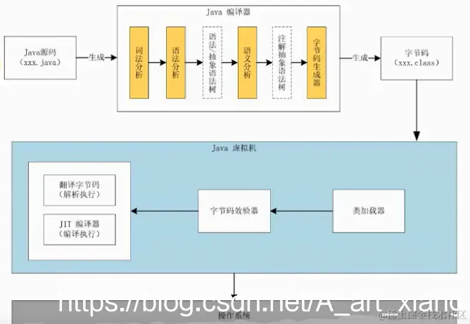 java代码会进行两次编译,第一次生成class字节码文件,第二次使用JIT编译器将热点代码编译出来,进行缓存起来,增加程序性能。