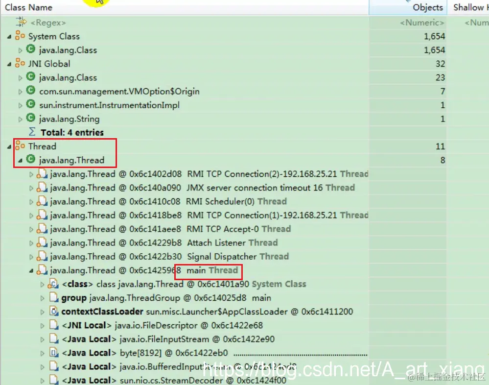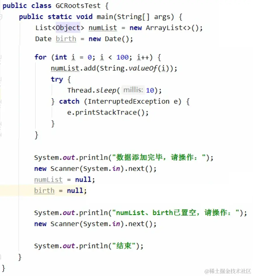在Thread->java.lang.Thread->main线程中,我们可以发现,在将对象置为null前,有Date和ArrayList类型的GC Roots,置为null后就没有了。