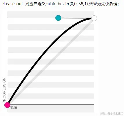 cubic-bezier 又称三次贝塞尔,主要是为 animation 生成速度曲线的函数,规定是