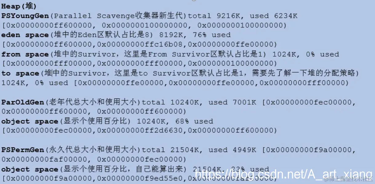 4.使用Parallel Scavenge收集器在新生代的名字是“[PSYoungGen”。