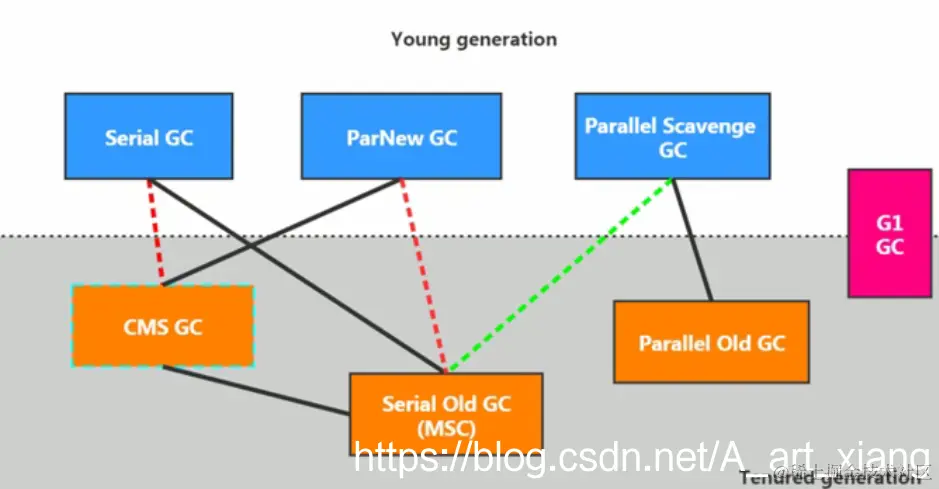 jdk14中:删除了青色虚线CMS回收器。