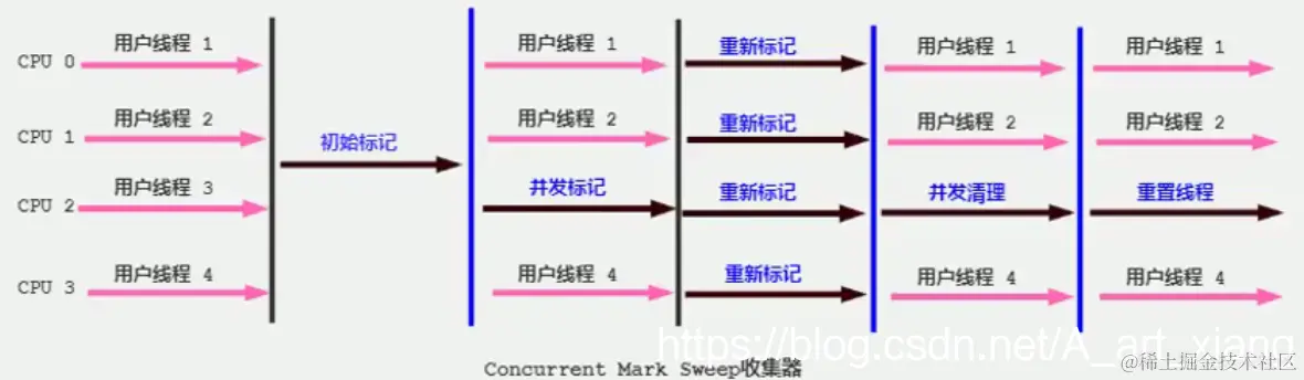 比较不幸的是CMS GC,因为其算法的理论缺陷等原因,虽然现在还有非常大的用户群体,但在JDK9中已经被标记为废弃,并在JDK14版本中移除。